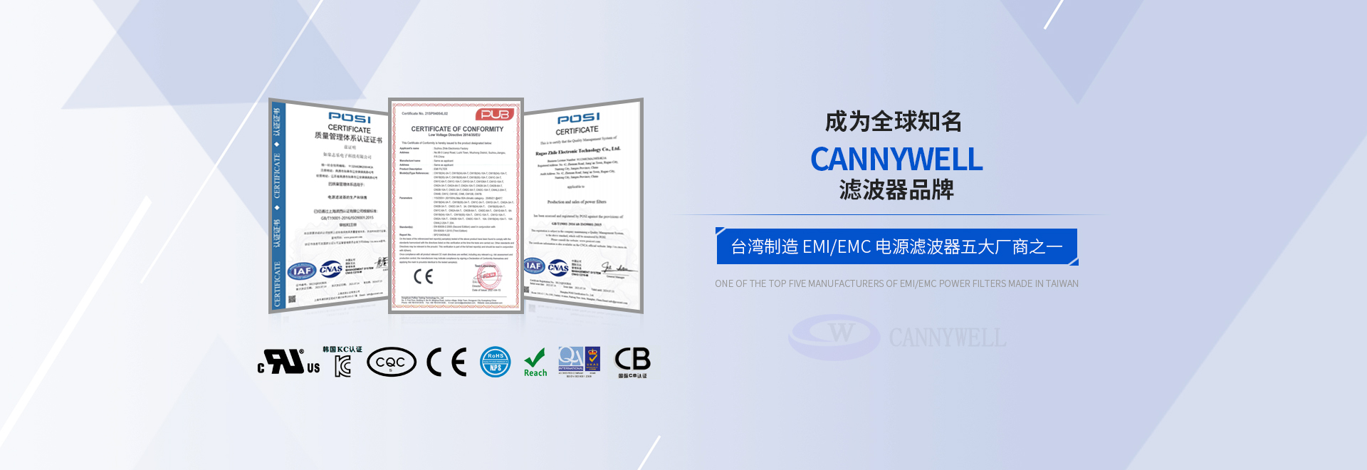 CANNYWELL 如臯志乐电子科技有限公司,前身是台湾广志实业股份有限公司.(苏州志乐电子厂) . (苏州肯尼威电子)是台湾 制造 EMI/EMC 电源滤波器五大厂商之壹,本公司已累积三十六年在大陆,专业制造高频、低频、主动、被动,及电源滤波器相关经验,先进的测试设备和严格的质量管制,从小电流到大电流的滤波器皆是我们的专长.